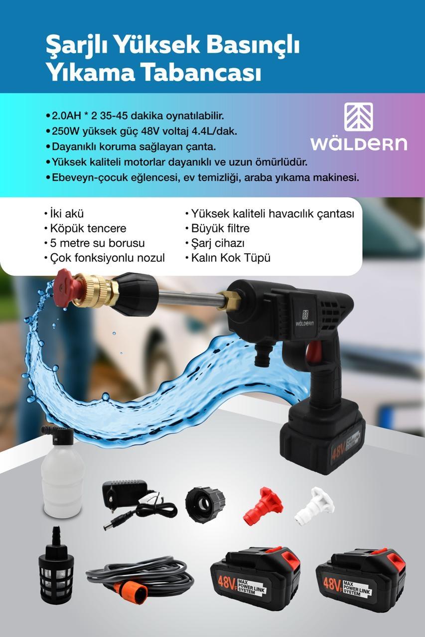 Yenilikçi Güç ve Taşınabilirlik 250 W’lık güçlü saf bakır motorla donatılmış bu kablosuz basınçlı yıkama tabancası, pratik ve etkili temizlik sağlar. 2 adet şarjlı akü sayesinde, enerji kesintisine son. İki pil bir arada uzun süreli kullanım keyfi sunar. Çok Yönlü Kullanım Araba, bisiklet, motosiklet, karavan, bahçe çitleri, dış cephe, metal ve plastik yüzeyler, temizlik gereken her alanda yanınızda. Bu tabanca, hem düz temizlik hem sulama amaçlı esneklik sunar. Güçlü performans: 250 W motor ve çift akü sistemi ile uzun kullanım. Çok işlevli nozzle ve köpük haznesi: Derinlemesine ve etkili temizlik. Su çekebilme özelliği: Her yerde kullanım avantajı. Dayanıklı ve taşınabilir: ASB+PC şasi ve taşıma çantası. Güvenli alışveriş: ve garanti kolaylığı. 250 W motor ve çift bataryalı tasarımla desteklenen bu kablosuz basınç tabancası; araç, bahçe, karavan gibi pek çok alanda yüzey temizliğinde üstün performans ve esneklik sağlar. Çoklu nozulu, köpük haznesi ve su çekebilme özelliğiyle her durumda yanınızda!