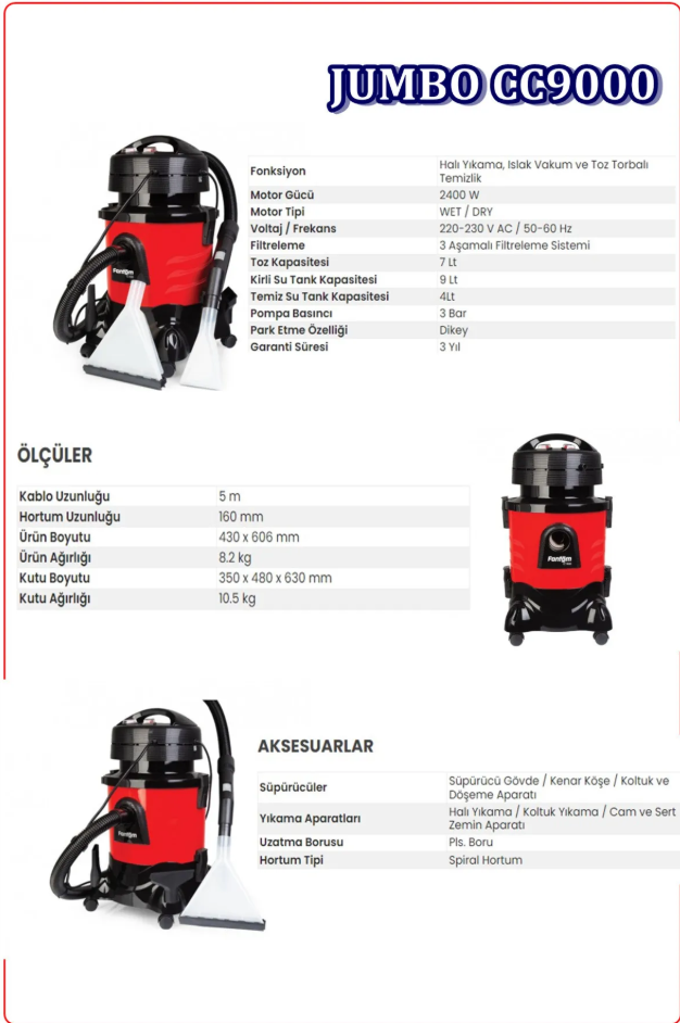 Jumbo Cc9000 Halı Koltuk Yıkama Robotu Ve Leke Çıkartma Makinesi  2400 W