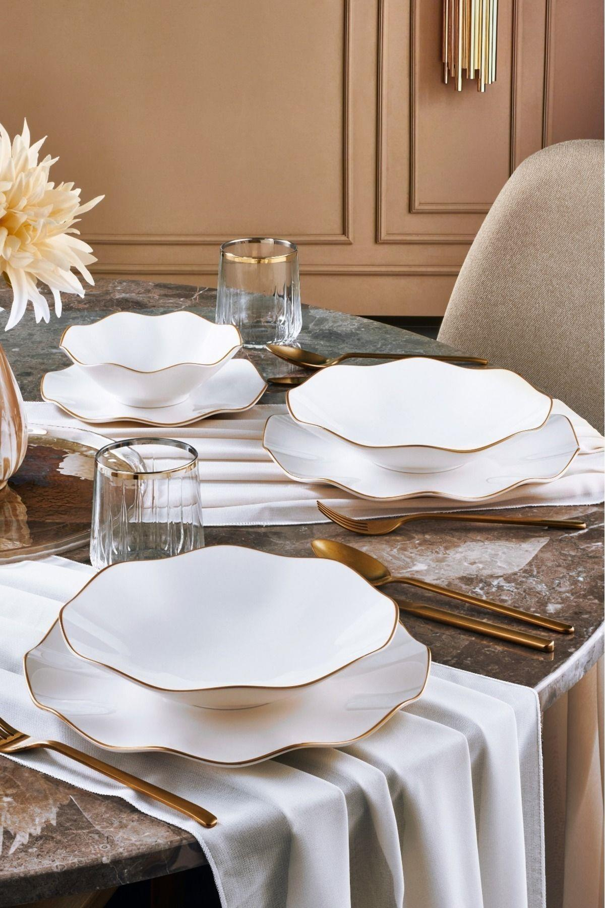 6 Adet Servis Tabağı 6 Adet Yemek Tabağı 6 Adet Pasta Tabağı 6 Adet Kase Parça Sayısı : 24 Parça Pürüzsüz yüzeyi sayesinde lekelenme yapmaz. ; Bulaşık makinesinde düşük sıcaklıklarda ve kısa devirlerde kullanılmalıdır. ; Uzun süreli kullanım ömrü için elde yıkamanız önerilir. ; Türkiye'de üretilmiştir. ; Dikkat Edilmesi Gerekenler Porselenlerin fırınların ısıtıcı bölümlerinde ve mikro dalga fırınlarda ısıtılmalarında bir sakınca yoktur. ; Ancak, ateşe dayanıklı porselenler haricindeki porselen ürünlerin çıplak ateşle direkt teması porselende şok etkisi yaratır ve kırılır. ; Porselenlerin fırınların ısıtıcı bölümlerinde ve mikro dalga fırınlarda ısıtılmalarında bir sakınca yoktur. ; Ancak, ateşe dayanıklı porselenler haricindeki porselen ürünlerin çıplak ateşle direkt teması porselende şok etkisi yaratır ve kırılır. ; Porselenler derin dondurucularda da aynı güvenle kullanılabilir, ancak dondurucudan veya buzdolabından çıkan porselenin hemen fırına konması halinde ani ısı değişimi nedeni ile porselen kırılır. ; Temizlik ve Bakım Krem ve sıvı deterjanlar kullanılabilir. ; Yıkandıktan sonra bol su ile durulanmalı ve mutlaka kurulanmalıdır. ; Sert temizlik maddeleri veya tel ile ovularak temizlenmemelidir. ; (bulaşık süngerinin sert yüzeyi gibi) çamaşır suyu ve benzeri kimyasallar ile yıkanmamalıdır. ; Porselenlerin süslemelerinde yoğun altın, platin ve yaldız kullanılan ürünlerin ise elde yıkanması tavsiye edilir. ; Güle güle kullanın;