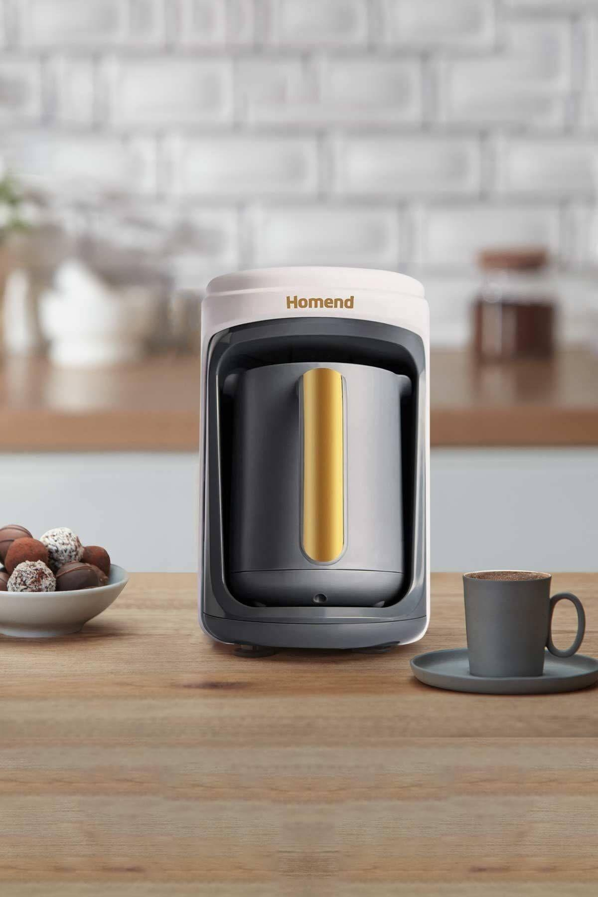 Homend Pottoman 1860h Türk Kahve Makinesi Krem Gold;Tam kıvamında, bol köpüklü bir Türk Kahvesine ne dersiniz? Homend Pottoman Türk Kahvesi Makinesi, özel ısı dengesi ile kahvenizi köz tadında, bol köpüklü ve tam kıvamında pişirir.; Tek seferde 5 fincan Türk Kahvesi pişirebilen geniş hazneye sahip Pottoman, kahvenizi yakmadan pişirirken, akıllı sensörü sayesinde haznedeki miktarı algılayarak taşmayı önler ve size temizlikle ilgili sorun çıkarmaz.; Kahveniz piştikten sonra kendini otomatik olarak kapatan Pottoman ile size arkanıza yaslanıp bol köpüklü kahvenizi yudumlamak kalır!;*TÜRK KAHVESİ GURUSU;Hiçbir şey köpüklü kahve marifetinizi elinizden alamaz, makineniz yapsa bile! Biz özel ısı dengesiyle kahvenizi yakmadan köz tadında pişirelim, siz bol köpüklü kahvelerinizin keyfini çıkarın! Köpük işi bizde ama unutmayın, soğuk suyla yapılan kahve daha iyi köpürür.;*HEM AKILLI HEM TEMİZ ;5 fincan Türk kahvesi pişirebileceginiz geniş hazneli makineniz, akıllı sensörleriyle haznedeki miktarı algılar ve taşmayı önler.; Size temizlikle ilgili sorun çıkarmaz, mutfağınızın her köşesinde yer alabilir.;*İŞ BİTİRİCİ;Kahveniz piştikten sonra hazneyi çıkardığınızda makineniz kendini otomatik olarak kapatır, bir daha herhangi bir düğmeye basmanıza gerek kalmaz.; Size kalan arkanıza yaslanıp, bol köpüklü kahvenizi yudumlamak!;*Teknik Özellikler;Fincan Kapasitesi: 5;Güç: 535 W;Otomatik Kapanma: Var.;Sesli İkaz: Var.;Su Kapasitesi: 300 ml;Su Seviyesi Göstergesi: Var.;Su Koymadan Çalışmama Emniyeti: Var.;Taşma Emniyeti: Var.