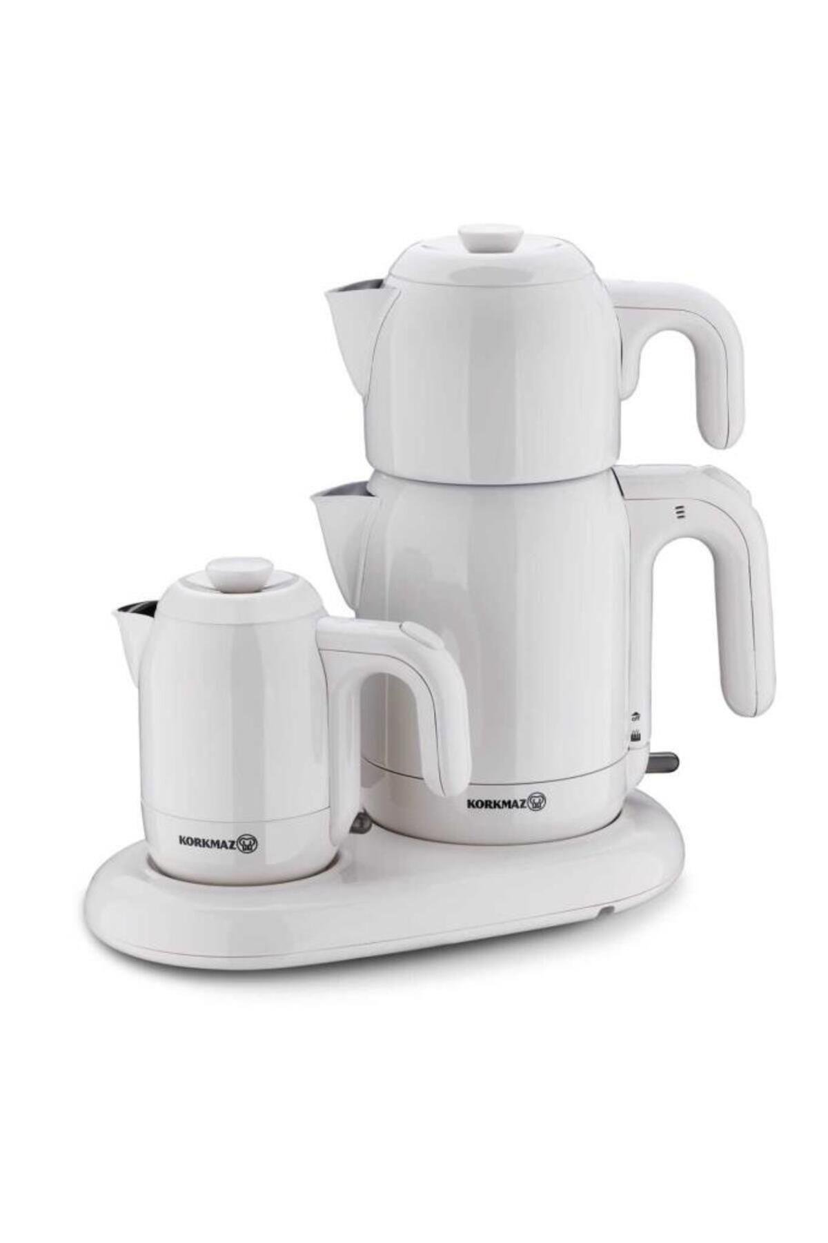 Korkmaz A353 Mia Çay Kahve Makinesi Seti Ürün DetaylarıKorkmaz A353 Mia Çay Kahve Makinesi Göz Alıcı Güzellikte Büyüleyen Tasarım18/10 CR-Ni Paslanmaz çelikten imal edilen gövdesi ile ürün büyüleyici görünüme sahiptir.; Evlerde, ofislerde ve işyerlerinde zarif duruşu ile en az işlevi kadar ilgi görmeyi başarır.; Tek Terminal Gövde Üzerinde Çay ve Türk Kahvesi Hazırlama FonksiyonuÇay kahve makinesi olarak imal edilen ürün, tek terminalde geleneksel Türk çayı ve Türk kahvesi lezzetini buluşturur.; Tek seferde 20 bardağa kadar çay demlenebilen üründe, aynı anda 4 fincan bol köpüklü Türk kahvesi hazırlanabilir.; Konuklarınızın Beğeneceği Tatta Çay ve Türk KahvesiPaslanmaz çelikten imal edilen ürün, çay ve kahve lezzetini mükemmel seviyeye ulaştırır.; Demini almış lezzetli çayınızı ve bol köpüklü Türk kahvenizi tüm misafirlerinizin beğeneceğinden emin olabilirsiniz.; Otomatik Sıcak Tutma ve Kaynatma Özelliği ile Daha Az Elektrik TüketimiEnerji tasarrufu beklentilerine karşılık vermesi amacı ile geliştirilen otomatik sıcak tutma ve kaynatma özellikleri, elektrik tüketimini hissedilir düzeyde azaltır.; Çay sıcaklığı sabit bir değerde otomatik olarak tüketilirken, kaynama bitmesi ardından otomatik sıcak tutma özelliği devreye girerek enerji tüketimini azaltır.; Yüksek Isıtıcı Gücü ile Çay Demleme Süresinden Tasarruf1600 Watt ısıtıcı gücüne sahip ürün, çay demleme süresini kısaltır.; Daha hızlı su kaynatan güçlü ısıtıcı, en acil zamanda yardımınıza koşmayı başarır.; Susuz Kalmaya Karşı Elektrik Kesen Güvenlik SistemiIsıtıcı haznesinde su kalmadığında, ürün otomatik olarak elektriği kesebilen fonksiyona sahiptir.; Su tükendiğinde sizin müdahalenizi beklemeden kendini kapatan makine, güvenliğinizi tehlikeye atacak riskleri ortadan kaldırır.; Teknik ÖzelliklerSıcak Tutma Özelliği VarOtomatik Kapanma VarDemlik Kapasitesi 1100 MLGüç (Watt) 1600Materyal ÇelikMusluk YokIsıtma Kapasitesi 1700 ML