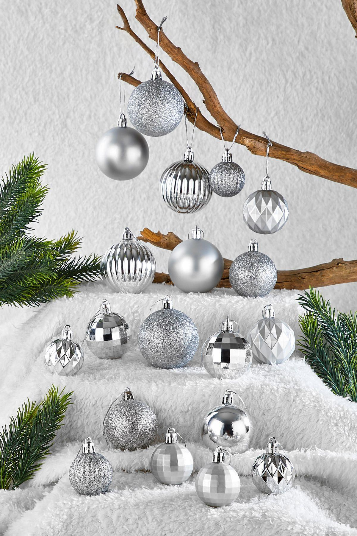 EMLshop 20Li Karışık Desenli Yılbaşı Süsü Gümüş Cici Top Emlshp 986362