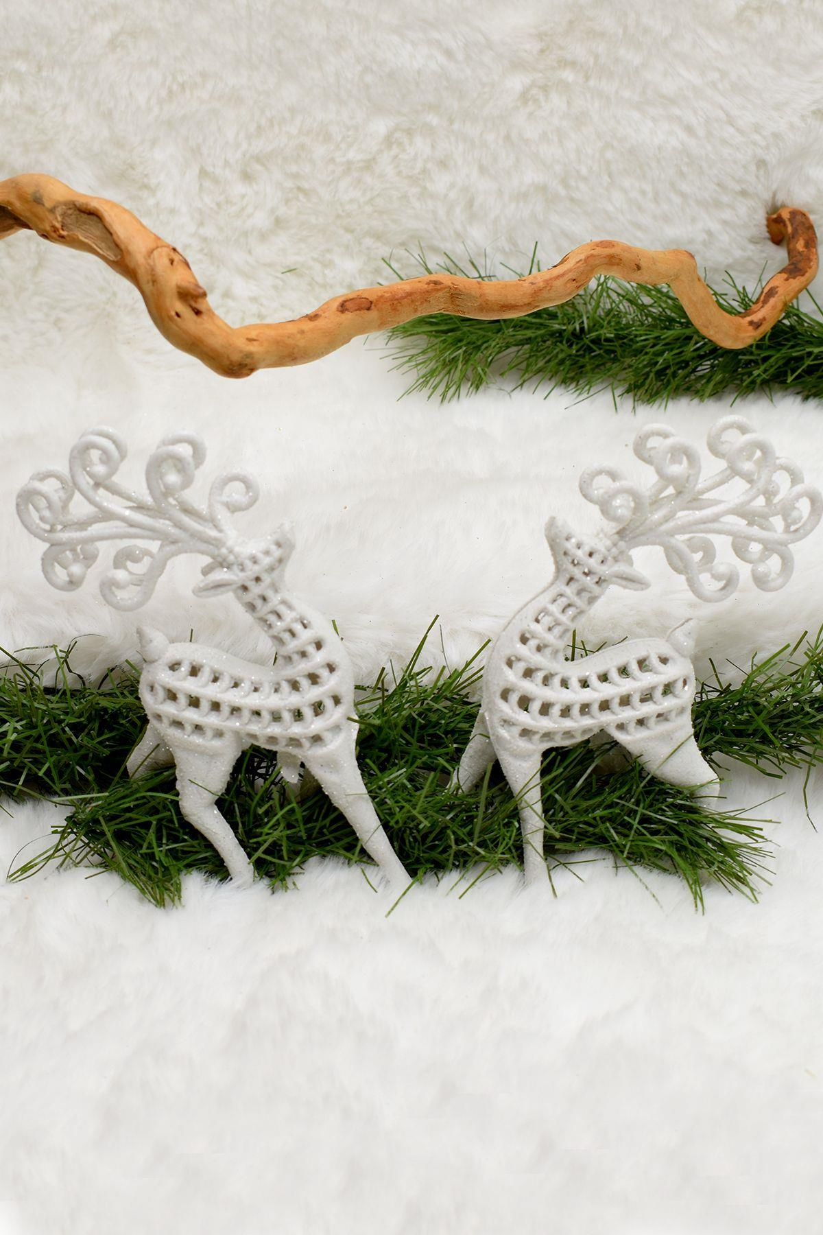 2li Beyaz Geyik Yılbaşı Ağacı Süsü 14*5cm