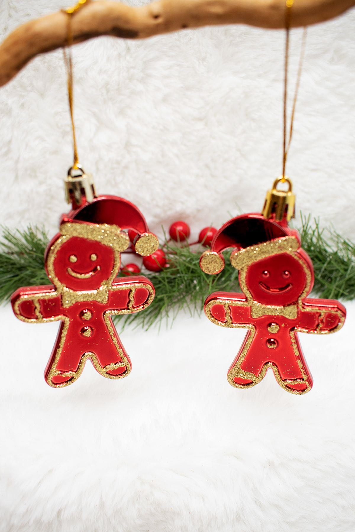 2li Kurabiye Adam Kırmızı Yılbaşı Çam Ağacı Süsü 9 Cm