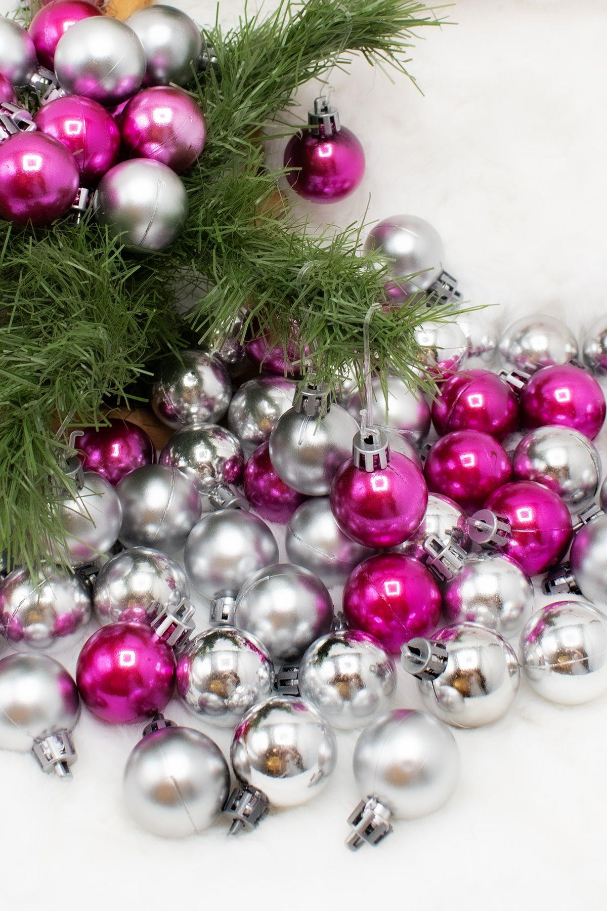 3 Cm 72 Adet Pembe-gümüş Cici Top Yılbaşı Çam Ağacı Süs