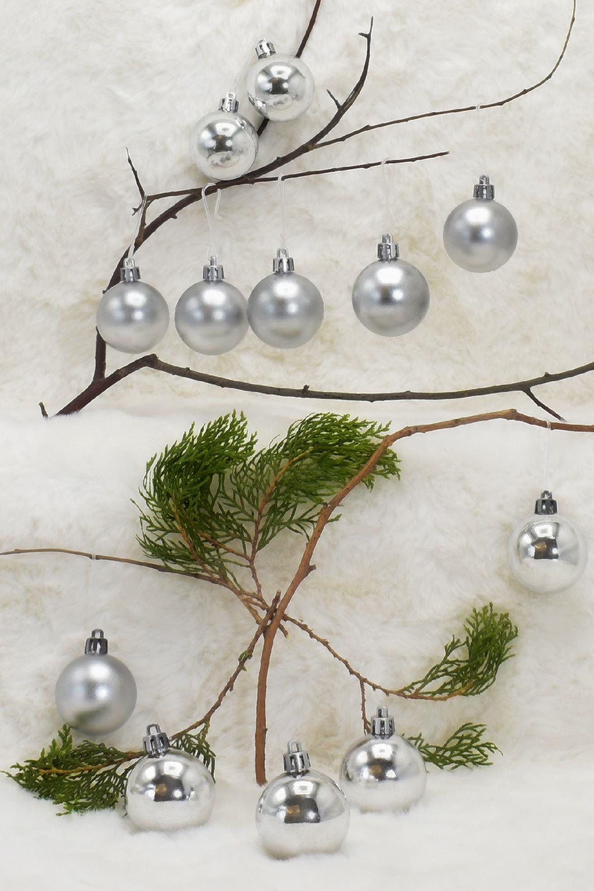 4 cm 12li Gümüş Cici Top (6 Parlak-6 Metalize) Yılbaşı Ağacı Süs
