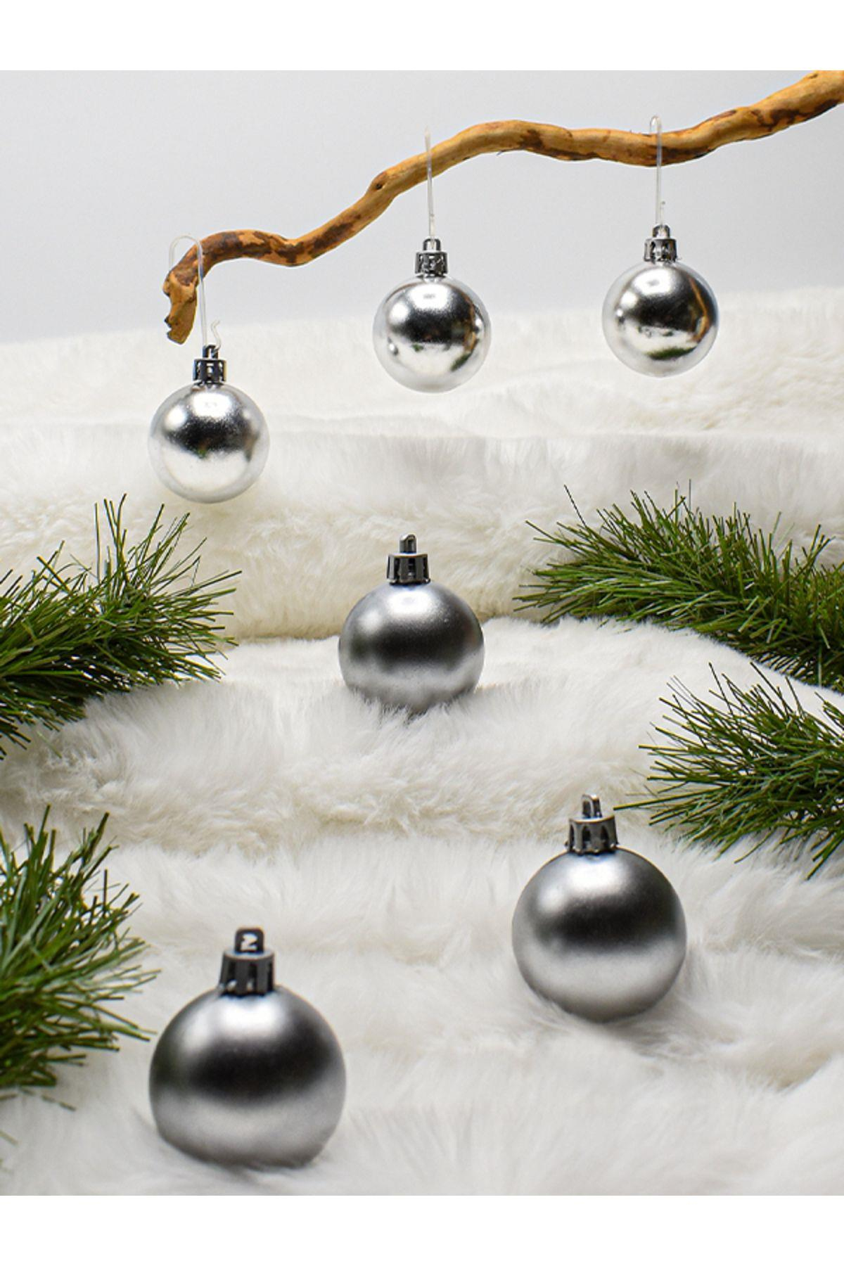 4 cm 6lı Gümüş Cici Top Yılbaşı Çam Ağacı Süsü (3 Metalize-3 Parlak)