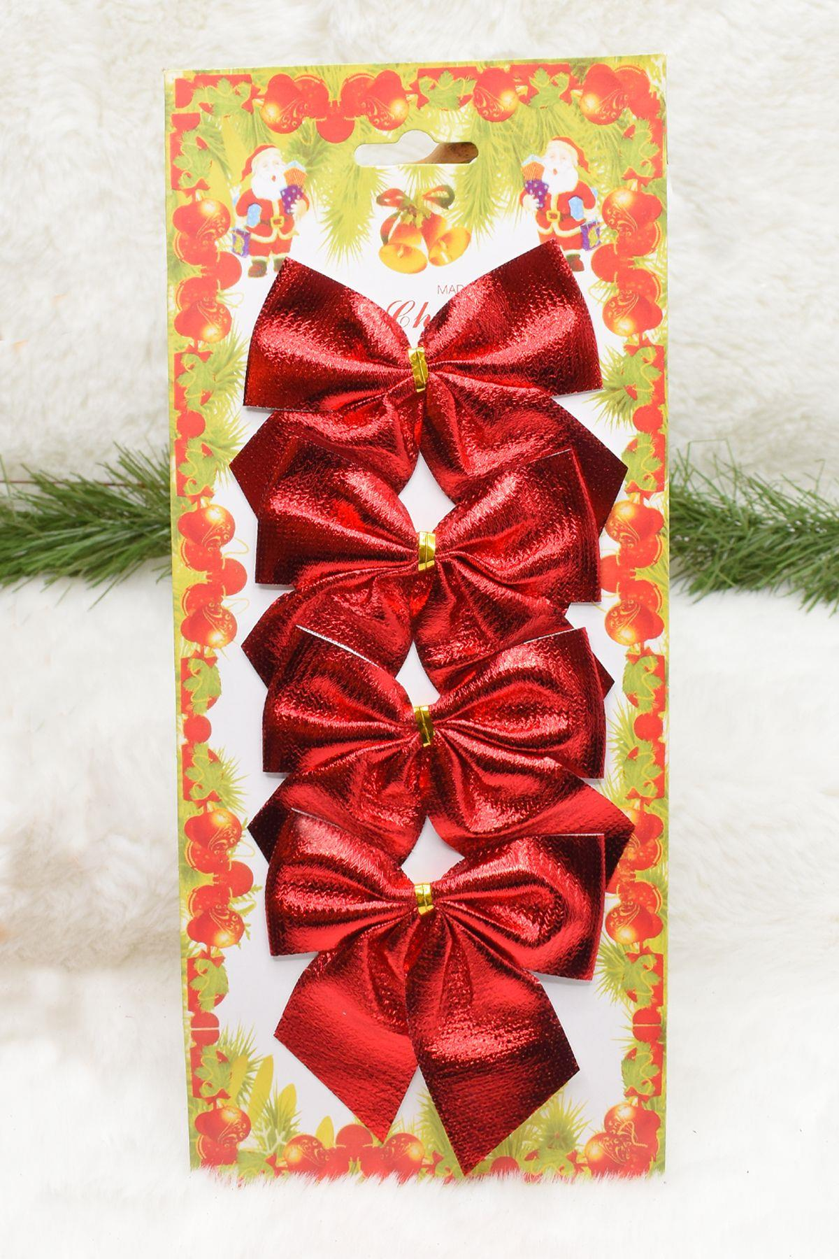 4lü Kırmızı Kurdela Yılbaşı Çam Ağacı Süsü 9cm