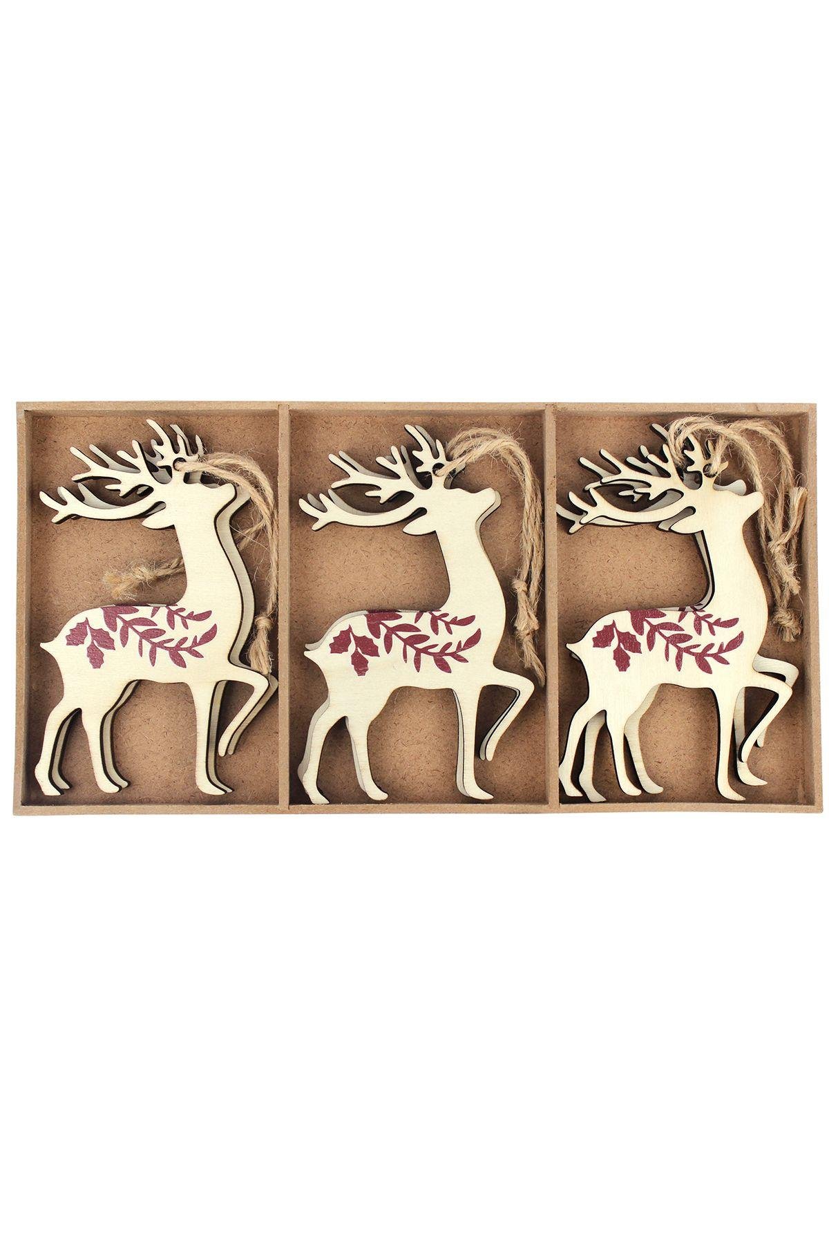 6lı Ahşap Seri Geyik Yılbaşı Süs 10*12cm