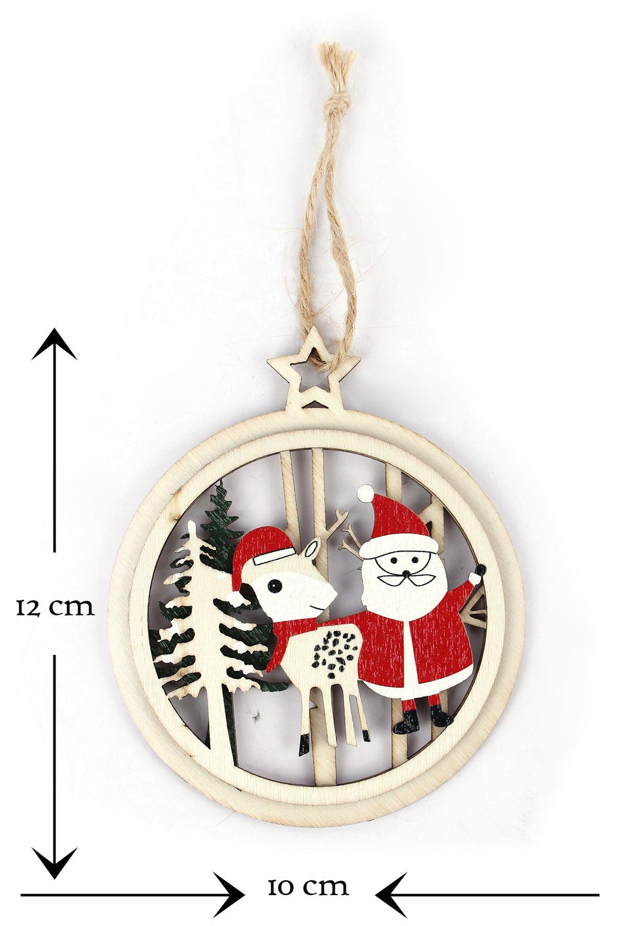 Ahşap Yuvarlak Yılbaşı Süs 10*12cm
