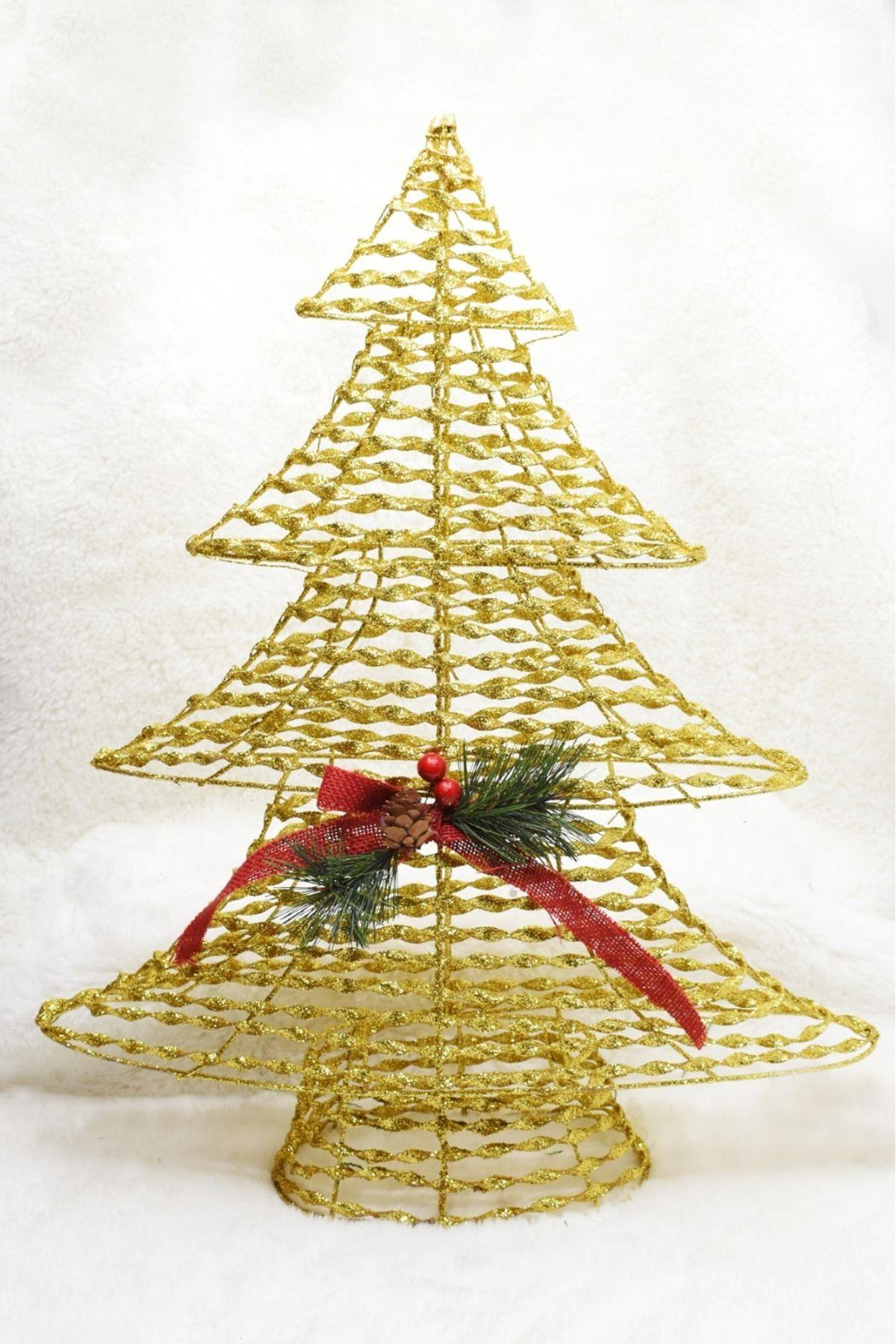 Gold Dekoratif Tel 3d Çam Ağacı Süs Xl Yılbaşı Süsü 60cm