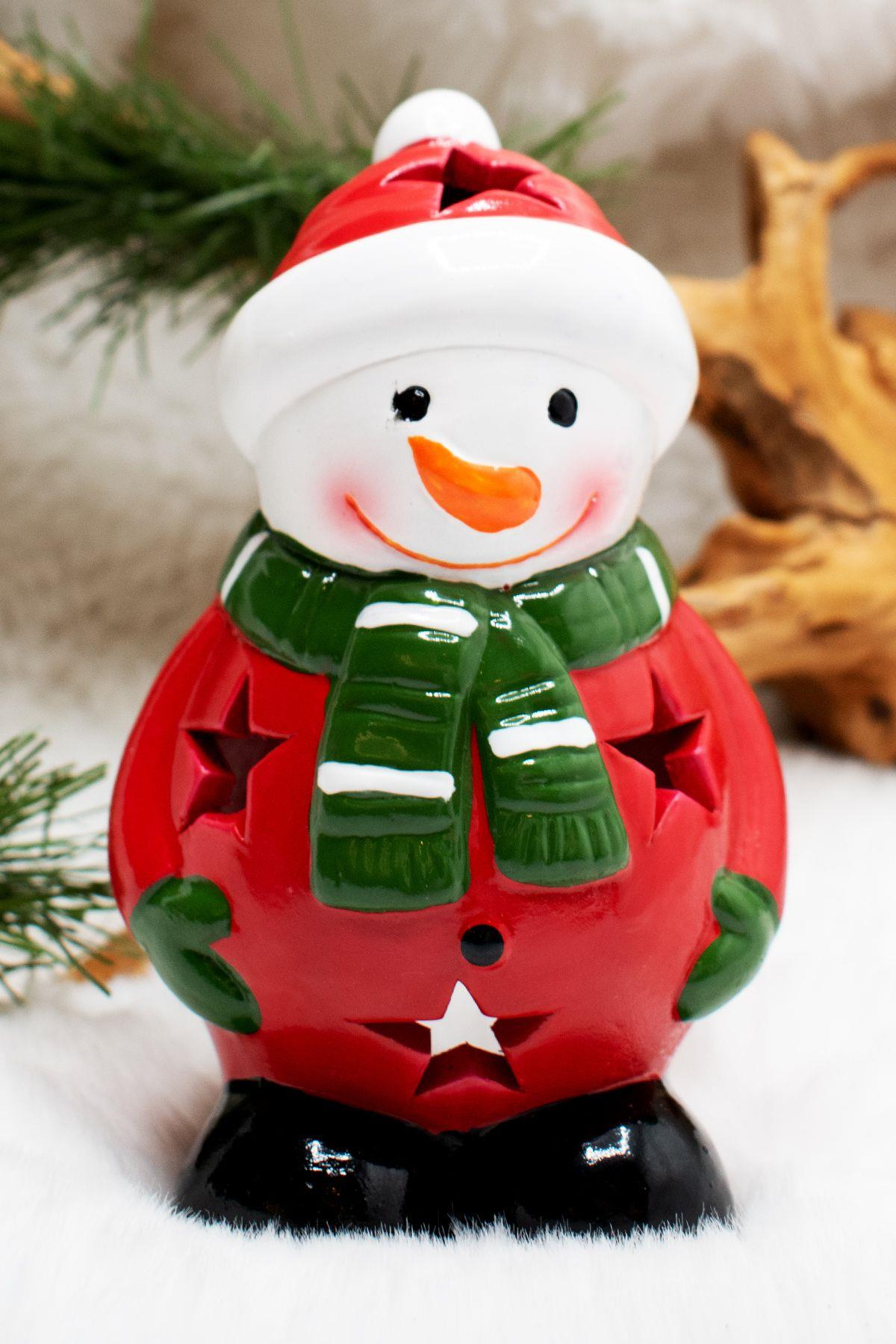 Luxury Yılbaşı Temalı Kardan Adam Mumluk Yılbaşı Süsü 14 Cm