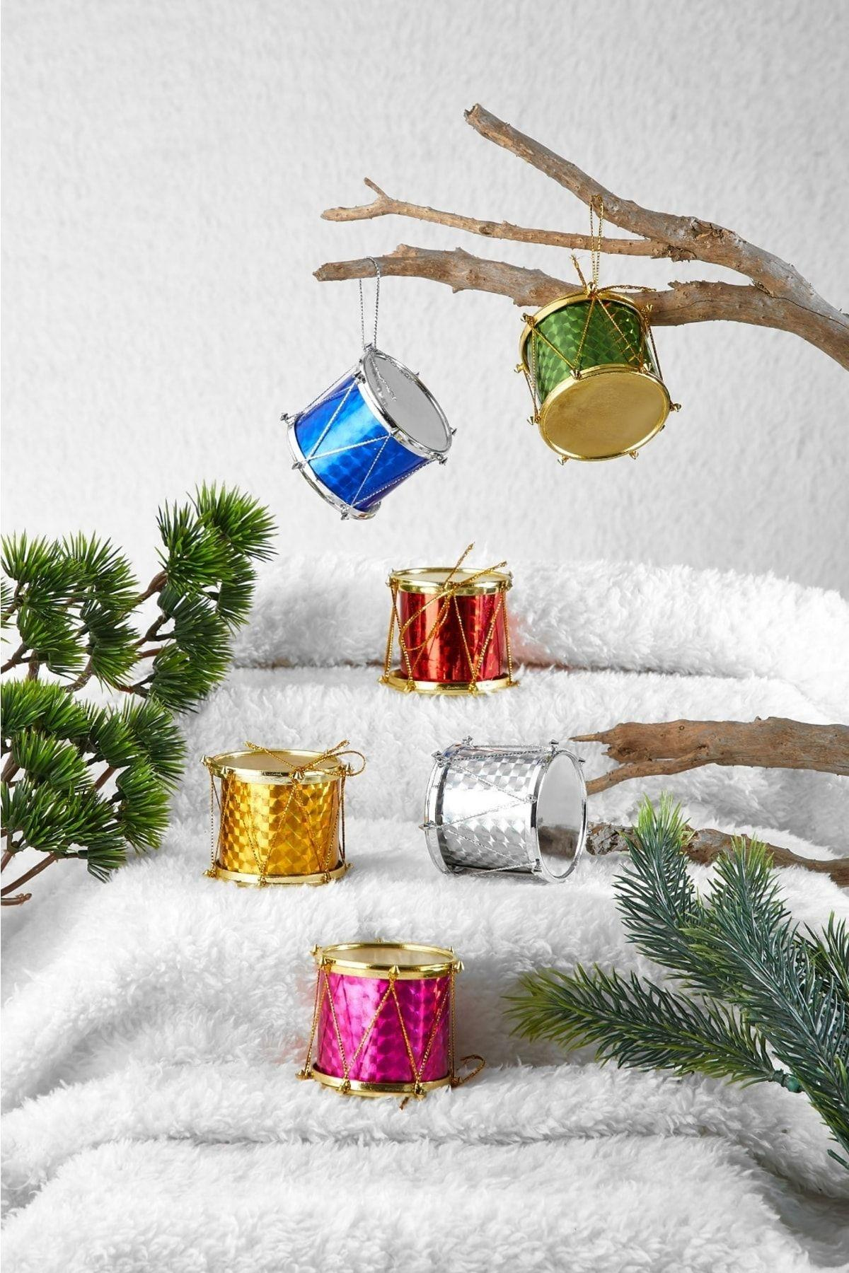 Yılbaşı Ağaç Süsü 4 CM Davul XXL Boy Renkli 6'lı