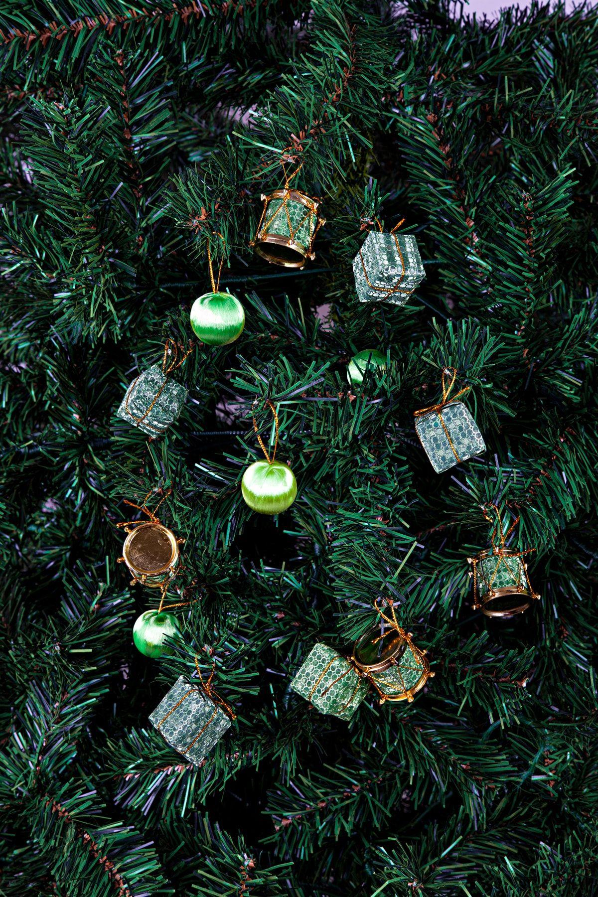 Yılabşı Çam Ağacı Süsü 3cm 13lü Davul-Cici Top- Hediye Paketi 5 Adet 3cm Hediye Paketi Süs ; 4 Adet 3cm Davul Süs ; 4 Adet 3cm Cici Top Süs ;