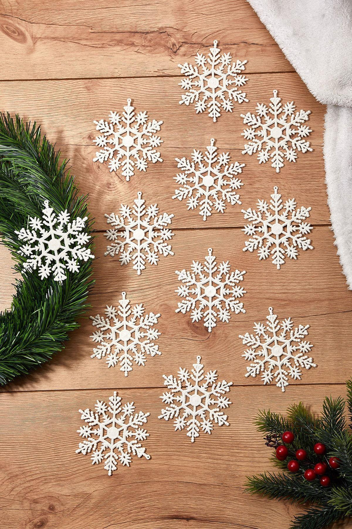 Yılbaşı Çam Ağacı Süsü Simli Kar Tanesi 12li